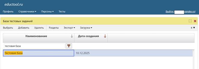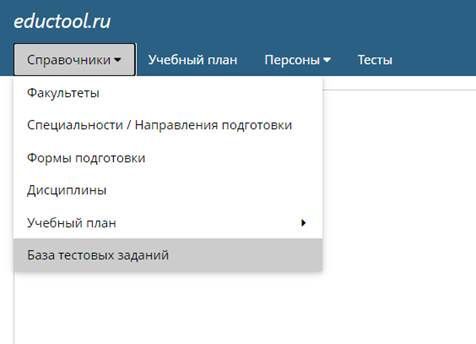 Для создания базы тестовых заданий необходимо перейти в пункт меню «Справочники» и выбрать подпункт «База тестовых заданий» (Рис. 2).
