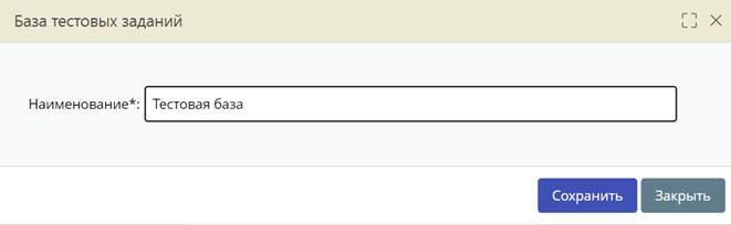 Для добавления новой базы в разделе «База тестовых заданий» нужно нажать кнопку «Добавить», на форме ввода данных ввести с клавиатуры наименование БТЗ, и нажать кнопку «Сохранить» (Рис.3).