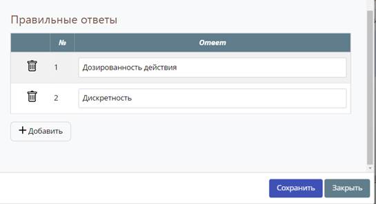 При добавлении ответов к вопросам типа «Текст» можно создать несколько строк с разными вариантами написания верных ответов, например, в большой и маленькой буквы, в разных падежах (Рис.13).