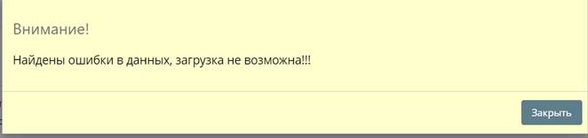 При наличии ошибок на форме проверки загрузки БТЗ, при нажатии на кнопку «Загрузить» появится ошибка (Рис.20)