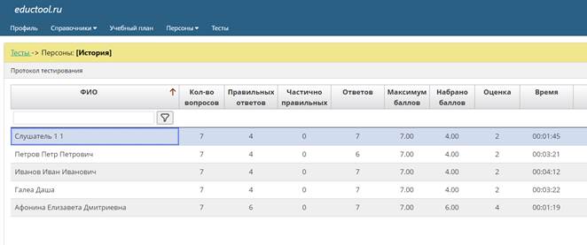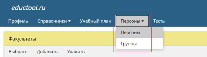 Пункт меню «Персоны» предназначен для работы с данными обучающихся, персон, которые будут проходить тесты в системе.