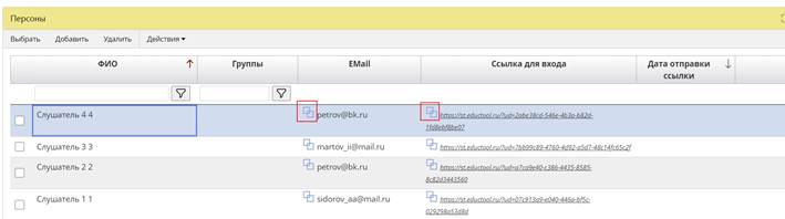 Рис.32. Список обучающихся для отправки ссылок на почты