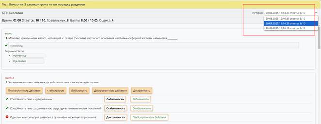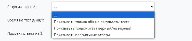 Значение, выбранное в поле «Результат теста» влияет на то, как будет отображаться итоговый протокол с результатами прохождения теста обучающимся (Рис.36).